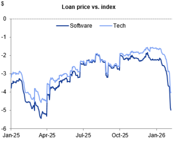 软件公司债券遭抛售: 今年以来,软件公司的杠杆贷款价格已下跌约4%。