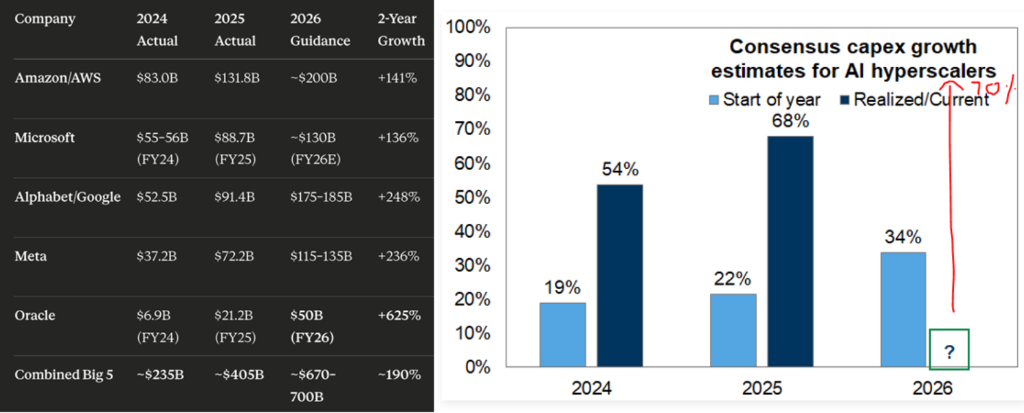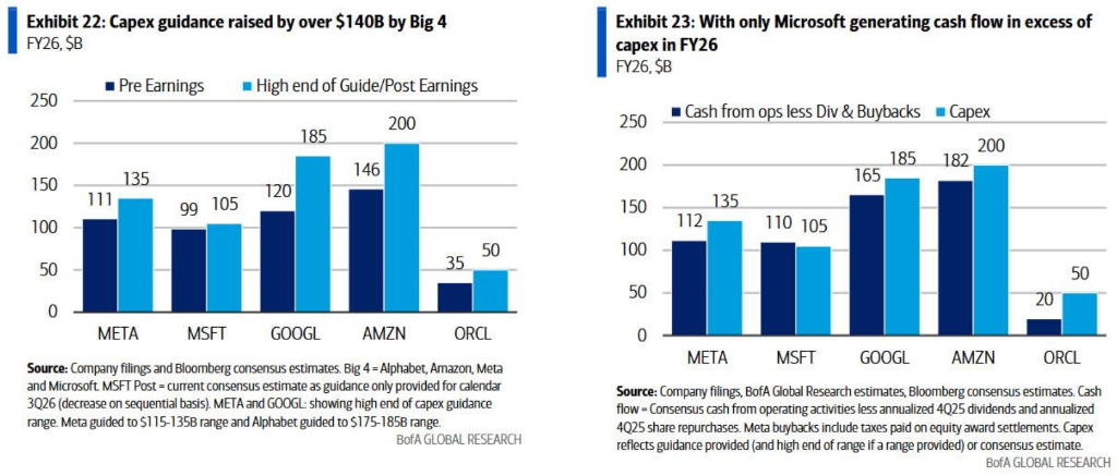 “这些数字如此之大,我们当时立即开玩笑说,把所有自由现金流都用来支付资本开支之后,Mag 7在2026年(甚至更久)将根本负担不起任何股票回购。”