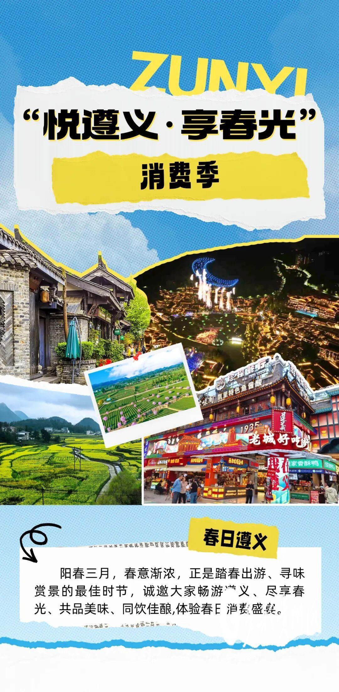 多彩贵州网讯阳春三月,春意渐浓,正是踏春出游、寻味赏景的最佳时节。在3月5日下午举行的遵义春季主题游新闻发布会上,遵义市商务系统发布了“悦遵义·享春光”消费季赏花采茶、美食美酒、夜游及购物一体化的促消费举措,为全市广大市民和游客朋友奉上一席遵义春日消费盛宴,诚邀大家畅游遵义、尽享春光、共品美味、同饮佳酿。